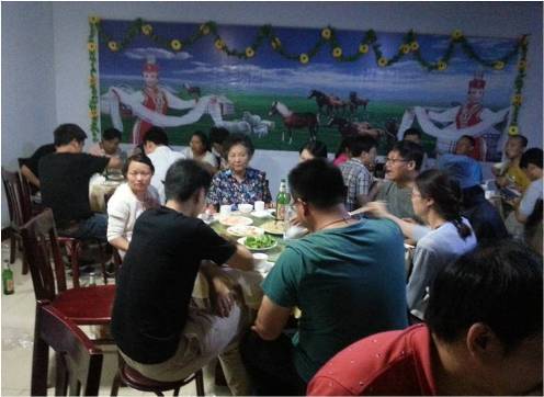 不知不覺已近黃昏,置身草原,感受微風(fēng)習(xí)習(xí),綠草飄搖,真是面對草原,浮想聯(lián)翩,心潮澎湃,心情那個爽啊?;氐睫r(nóng)莊,我們即將聚餐,等待那有蒙古風(fēng)情的烤全羊。