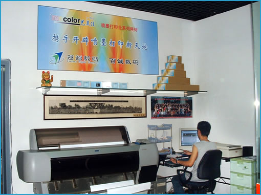 百誠數(shù)碼在藝風國美照相器材市場內(nèi)有近50平方米的營業(yè)店面,擁有三臺打印機器EPSON7600、EPSON9600、 EPSON10600,是一家影樓、寫真館照片的專業(yè)輸出中心,在蘇皖地區(qū)的影像行業(yè)具有較高知名度。該公司的徐經(jīng)理表示,以前一直是用原裝墨水,不光是成本較高,更重要的是用原裝墨水紅色的表現(xiàn)力不充分,改用藝美佳品牌墨水和紙張能完美的打印出來。的確,運源公司想客戶所想,在影像行業(yè),公司專門配備了EYEONE一眼通分光光度儀,讓專業(yè)的技術人員現(xiàn)場幫助客戶做配套的藝美佳墨水、紙張的色彩管理ICC文件,并對顯示器色彩進行校正,實現(xiàn)所見即所得的色彩管理目標。讓客戶無后顧之憂,有效地控制了輸出成本,保證了輸出品質(zhì),最終實現(xiàn)雙贏,達到共同發(fā)展的目的。