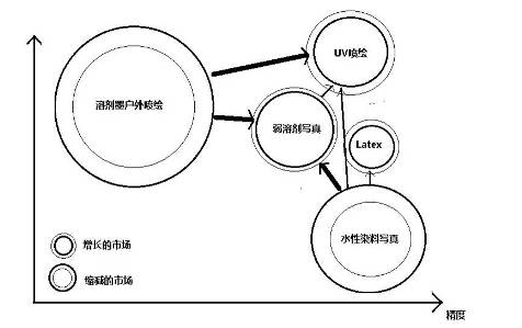 基于UV墨水的平板打印機市場,噴繪沒有涂層的材料,多種應(yīng)用,以替代傳統(tǒng)絲網(wǎng)印刷為主。
