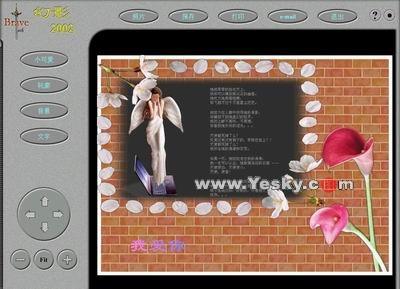 幻影200X系列是由勇敢科技工作室新近推出的一款優(yōu)秀的數(shù)字照片制作工具,使用圖像邊緣柔化技術(shù),可以把一幅或多幅圖像平滑的融合在一起。其可移花接木,讓美女與野獸共存,幻影2003是圖像合成的利器;也可以作為賀卡制作、婚紗攝影的工具。使用它可以為你的照片添加藝術(shù)像框和美麗的小飾品,只需要你輕輕移動鼠標(biāo),就可以做出一幅大師級藝術(shù)效果的新圖像。