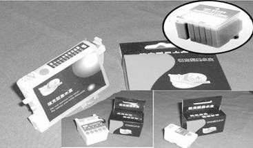 EPSON的打印機(jī)在墨盒上幾乎都裝有IC智能芯片,記錄墨水使用量,那么在打印機(jī)顯示墨盡以后就會(huì)停止工作,要使它工作就要將IC智能芯片恢復(fù)到初始狀態(tài)。目前恢復(fù)的辦法,一是使用恢復(fù)軟件,比如最有影響力的俄羅斯SSC Service Utility軟件,現(xiàn)已經(jīng)升級(jí)到了v3.71版本(下載網(wǎng)站:http://www.ssclg.com/epson.shtml)二是將墨盒從打印機(jī)中取出,用解碼器刷新。這兩種辦法都比較麻煩,原因是軟件并不支持所有打印機(jī),取出墨盒刷新則更不好,所以連續(xù)供墨的內(nèi)墨盒上就用到了另外一個(gè)辦法——直接裝入永久芯片。永久芯片體積大小和原廠墨盒上的IC智能芯片幾乎一樣,但是在恢復(fù)的方法上有區(qū)別:裝入永久芯片的打印機(jī)在面板指示燈閃動(dòng)或者電腦提示“墨盡”后,有的是采用關(guān)閉打印機(jī)電源幾分鐘后再次開啟電源、有的是采用更換墨盒的 “形式主義”方法后去操作面板按鍵,而內(nèi)墨盒根本就不用取出來;有的是拔掉打印機(jī)電源插頭,用斷電辦法就可以讓永久芯片恢復(fù),這個(gè)時(shí)候在電腦中查看剩余墨水就 “滿”了,打印機(jī)就可以繼續(xù)工作了。